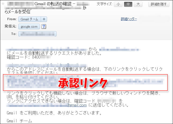 転送先のアドレスを確認してみましょう。