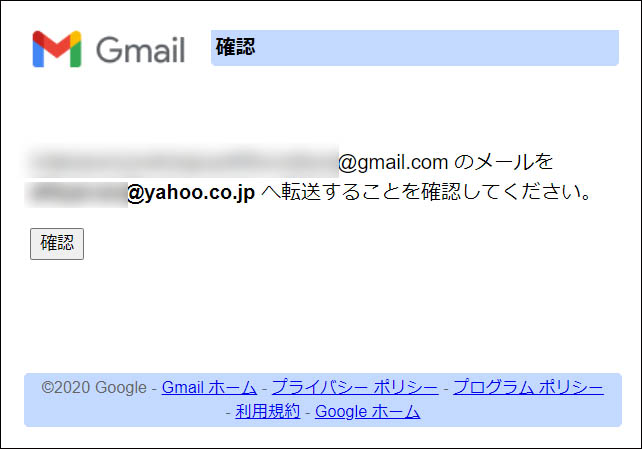 「転送先アドレスの確認」ウィンドウが表示されます。